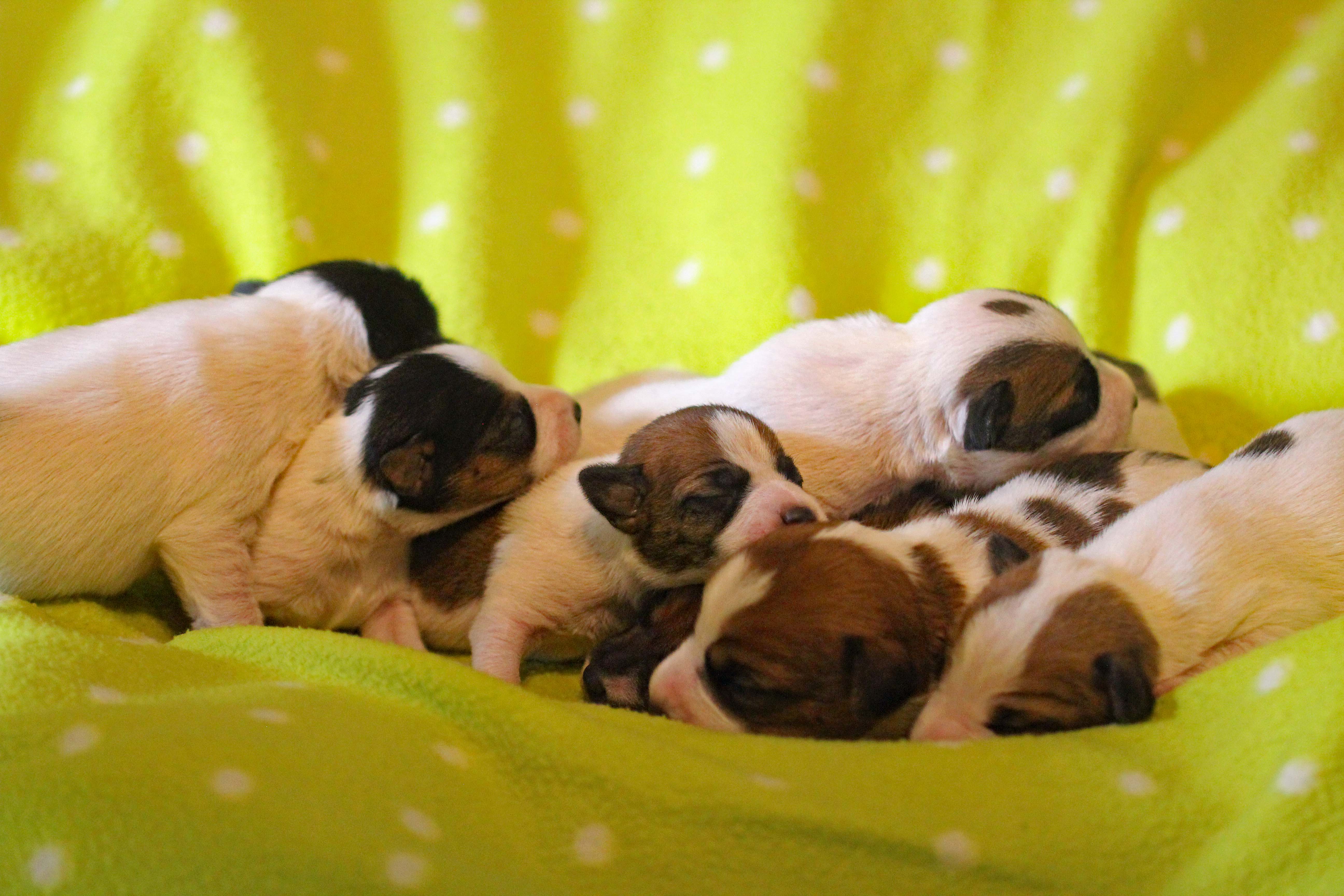 Neuigkeiten aus dem Kennel vom Moosstadl. Am 30.03.23 sind aus der Verpaarung Josephine vom Moosstadl x Foxbury’s Undercover Lou 7 Welpen gesund und munter zur Welt gekommen. Stolz präsentiert Lou die ersten Bilder von seinem Nachwuchs. Die 4 Hündinnen und 3 Rüden sind inzwischen 7 Tage alt und entwickeln sich prächtig. Weitere Fotos und alle Infos gibt’s hier ….. http://www.parson-russell-terrier-vom-moosstadl.de.